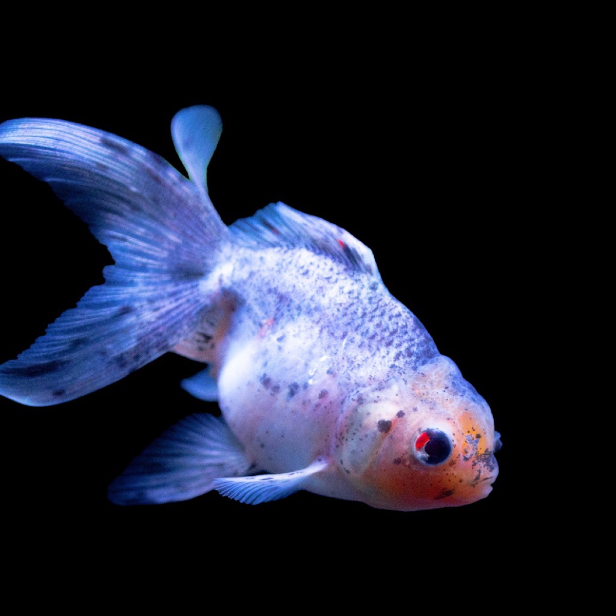 造形的特徴 : 最大の鑑賞ポイントは、オランダ獅子頭のような「頭部の肉瘤」がありながら、出目金のように「眼球が突出している」という、二つの大きな特徴が共存している点です。この組み合わせにより、他の金魚にはない非常に力強く、かつ神秘的な表情が生まれます。